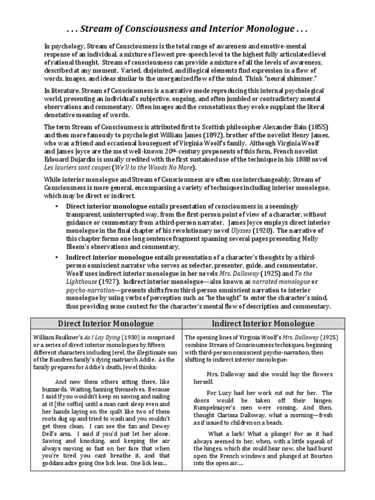 Stream Of Consciousness And Interior Monologue Pdf Consciousness Narration